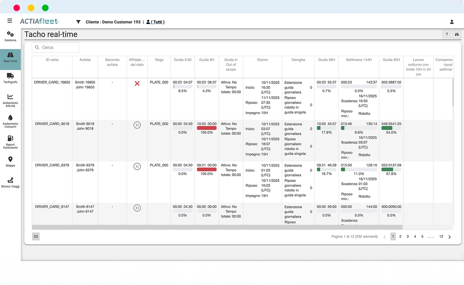 Monitoraggio tempi di guida