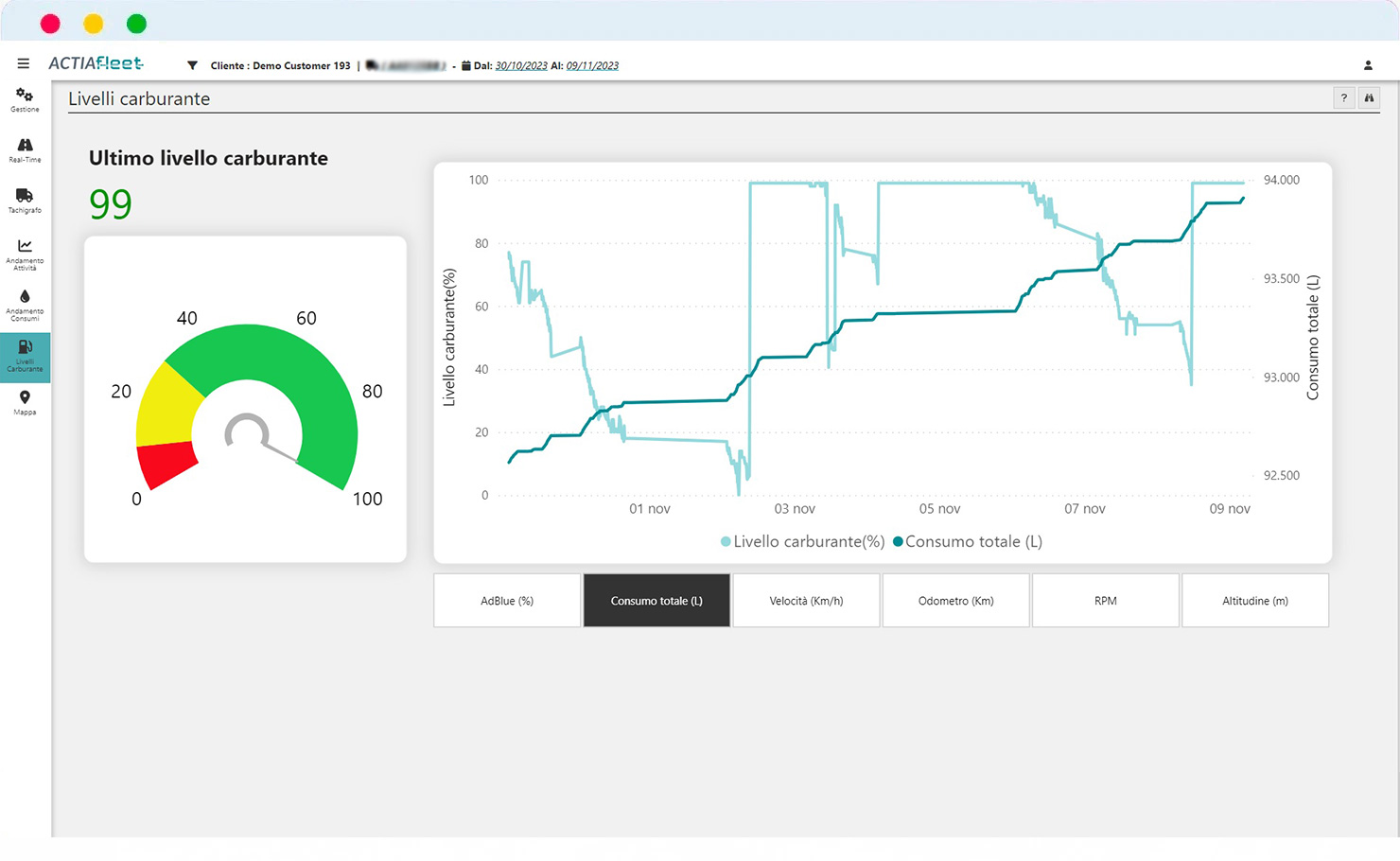 Monitoraggio Consumi e Livello Carburante in Tempo Reale